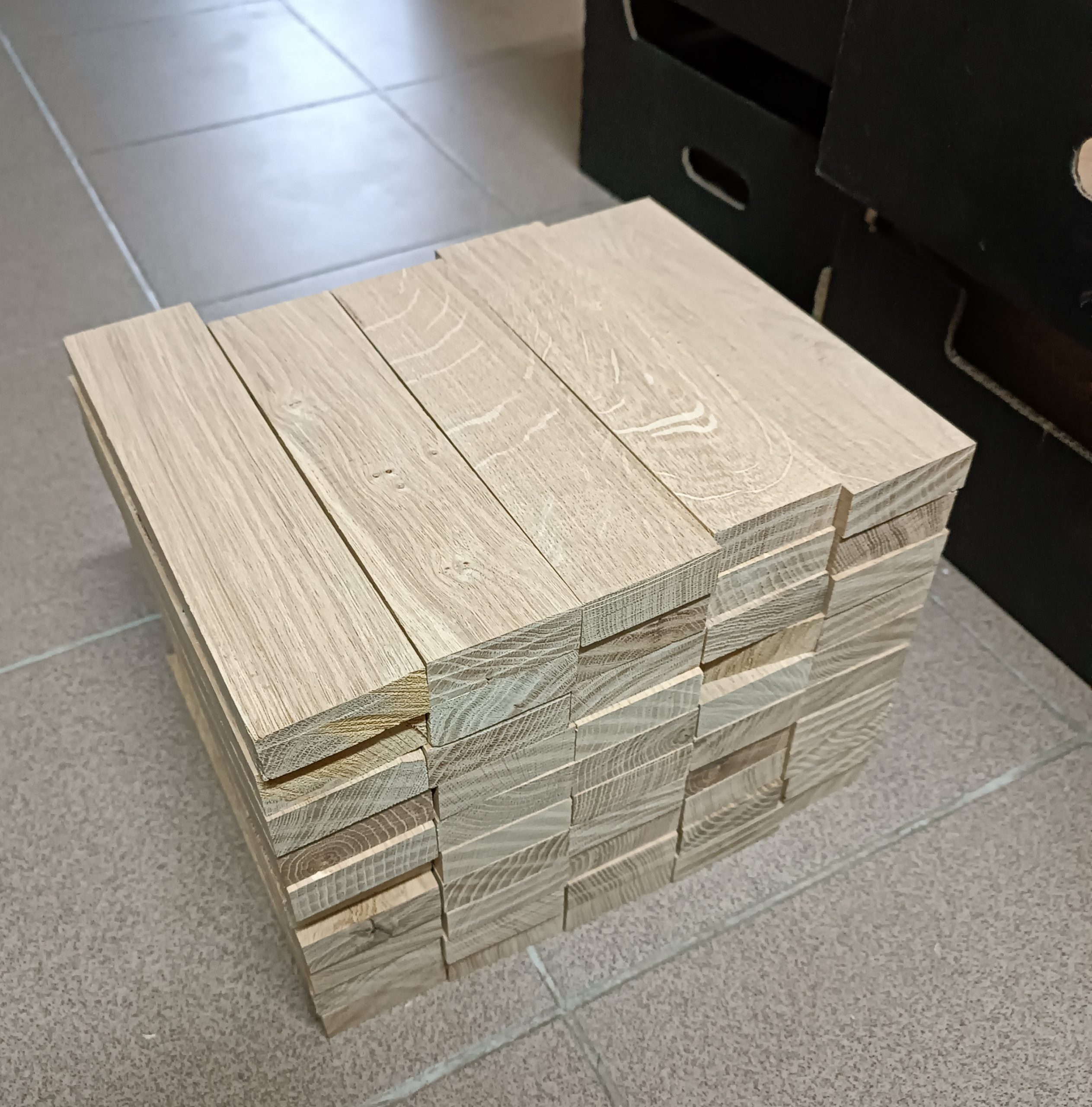 Fryza dąb europejski 55x20mm. Fryza po suszarni, wilgotność do 10%, dwie strony strugane, dwie po pile. Klasa AA i AB mix. Na lewej stronie możeliwy mały sęk lub wgniotki od posuwu strugarki. Fryza jest cięta z lekkim „plusem” na długość. Układ słojów oraz sęków może różnić się od tych na zdjęciu poglądowym. Jest to naturalna cecha drewna- każdy kawałek jest wyjątkowy. Cena podana za sztukę fryzy. Przy większym zamówieniu poza stanem magazynowym proszę o kontakt poprzez email.