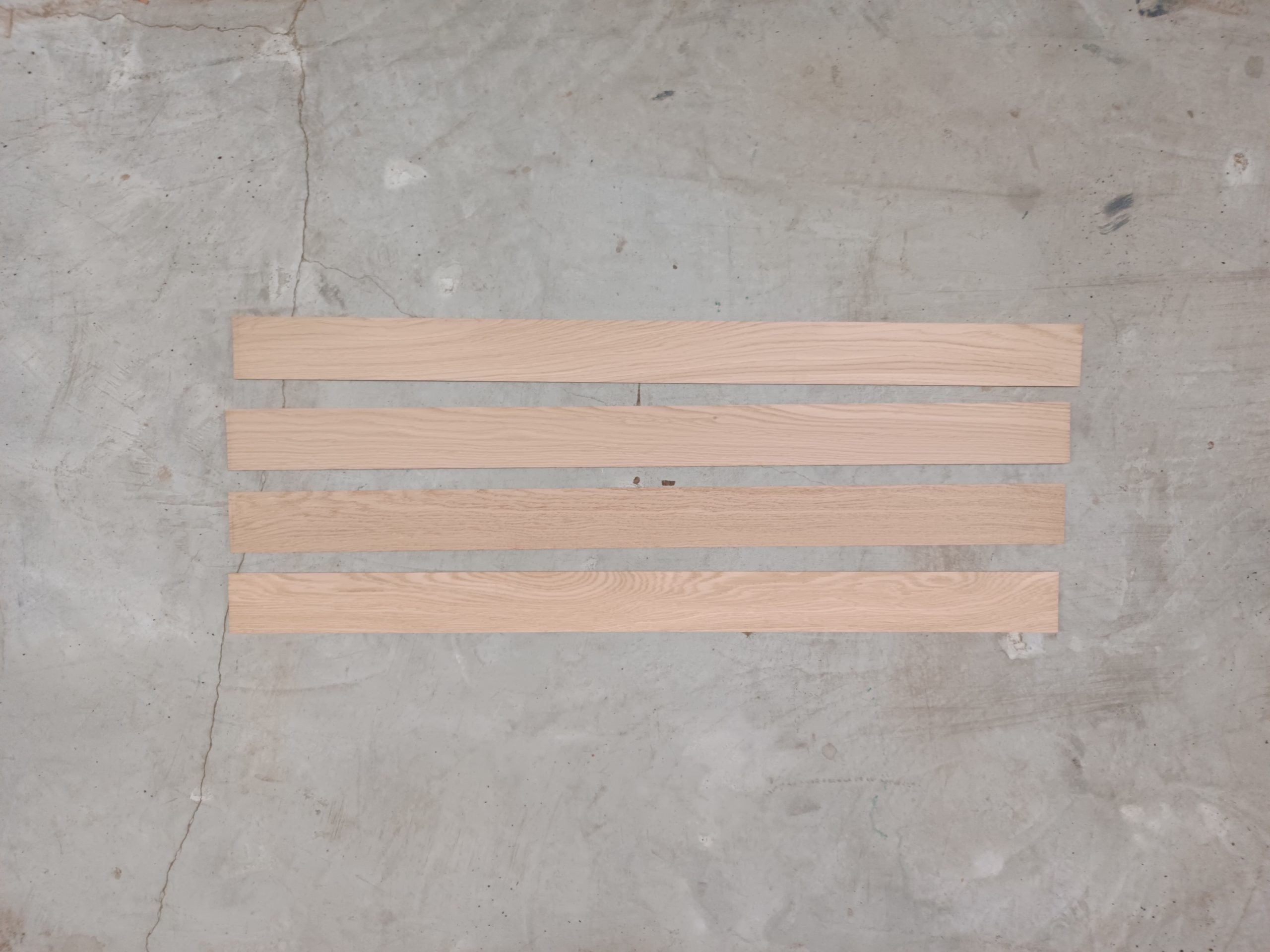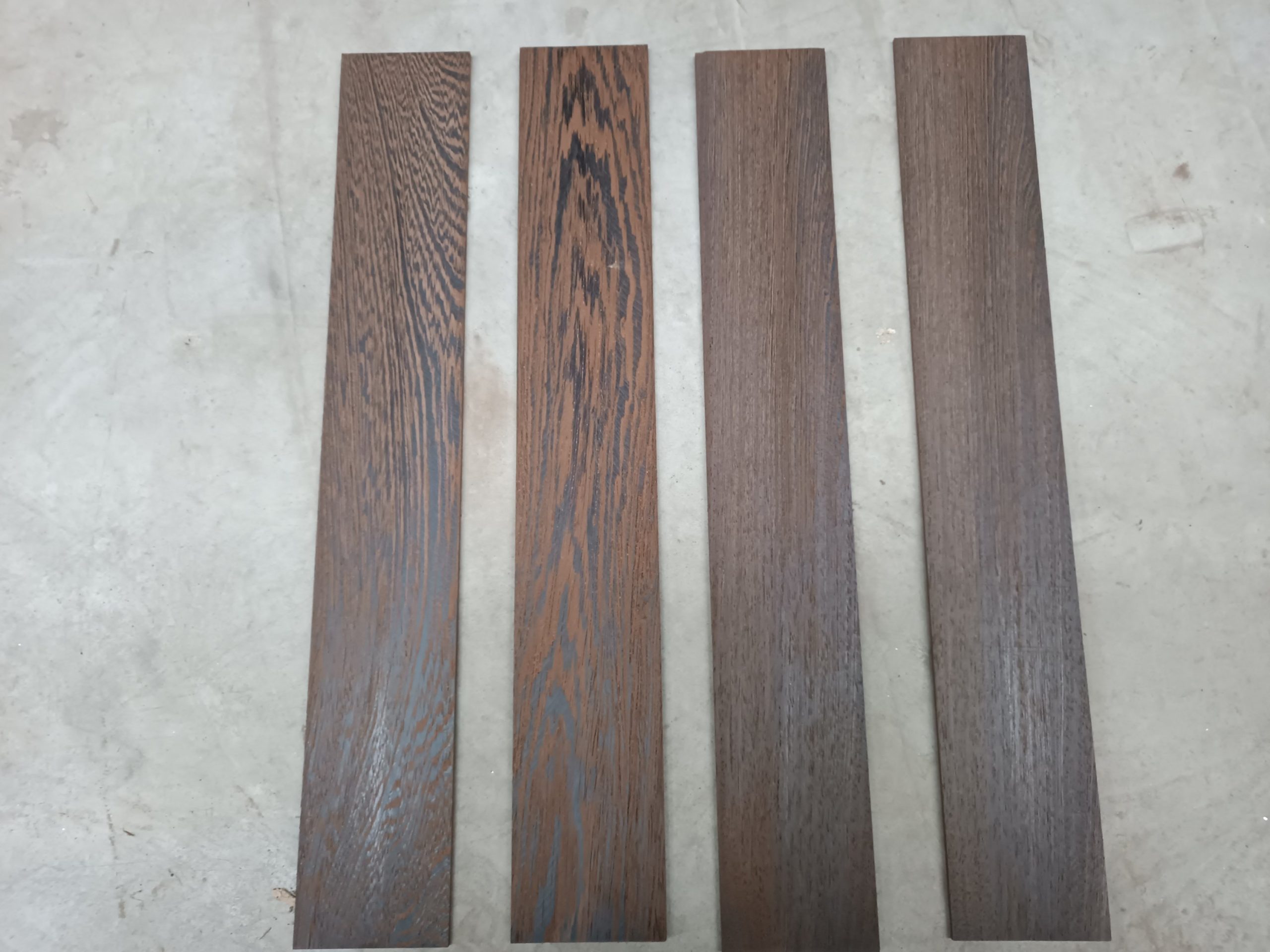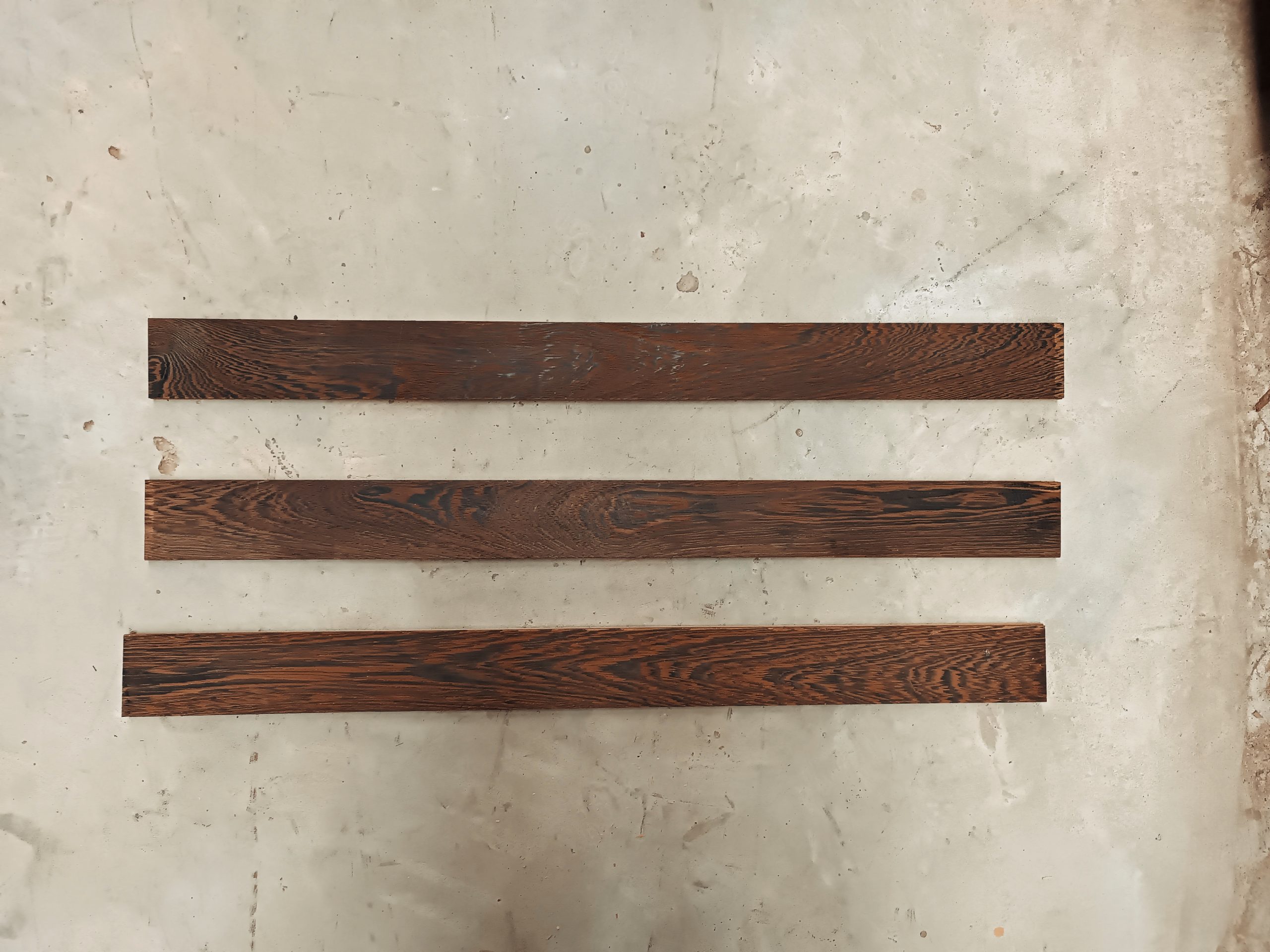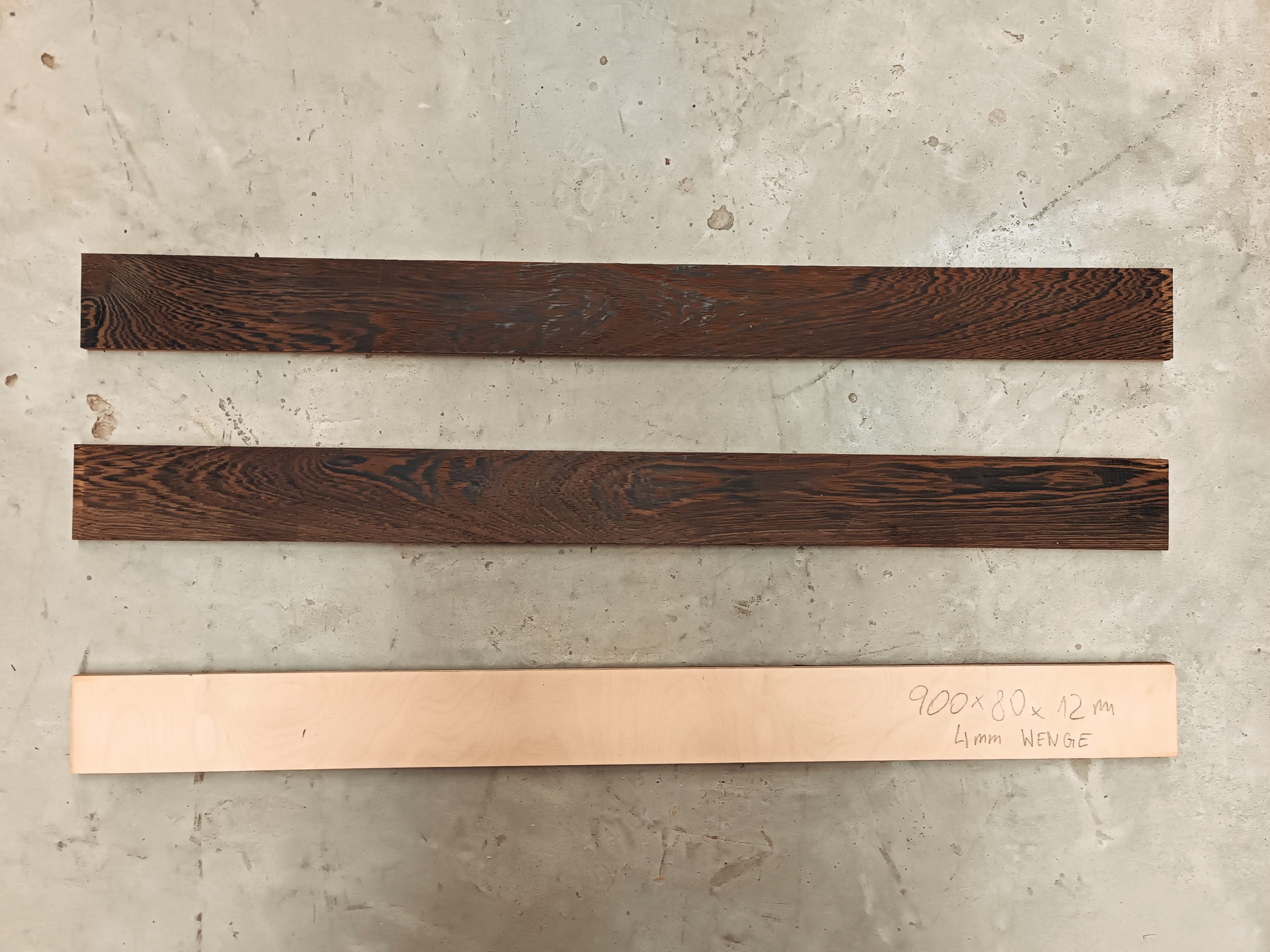 Obłóg wenge klejony na sklejkę 900x80x12mm. Grubość właściwego obłogu 4mm.