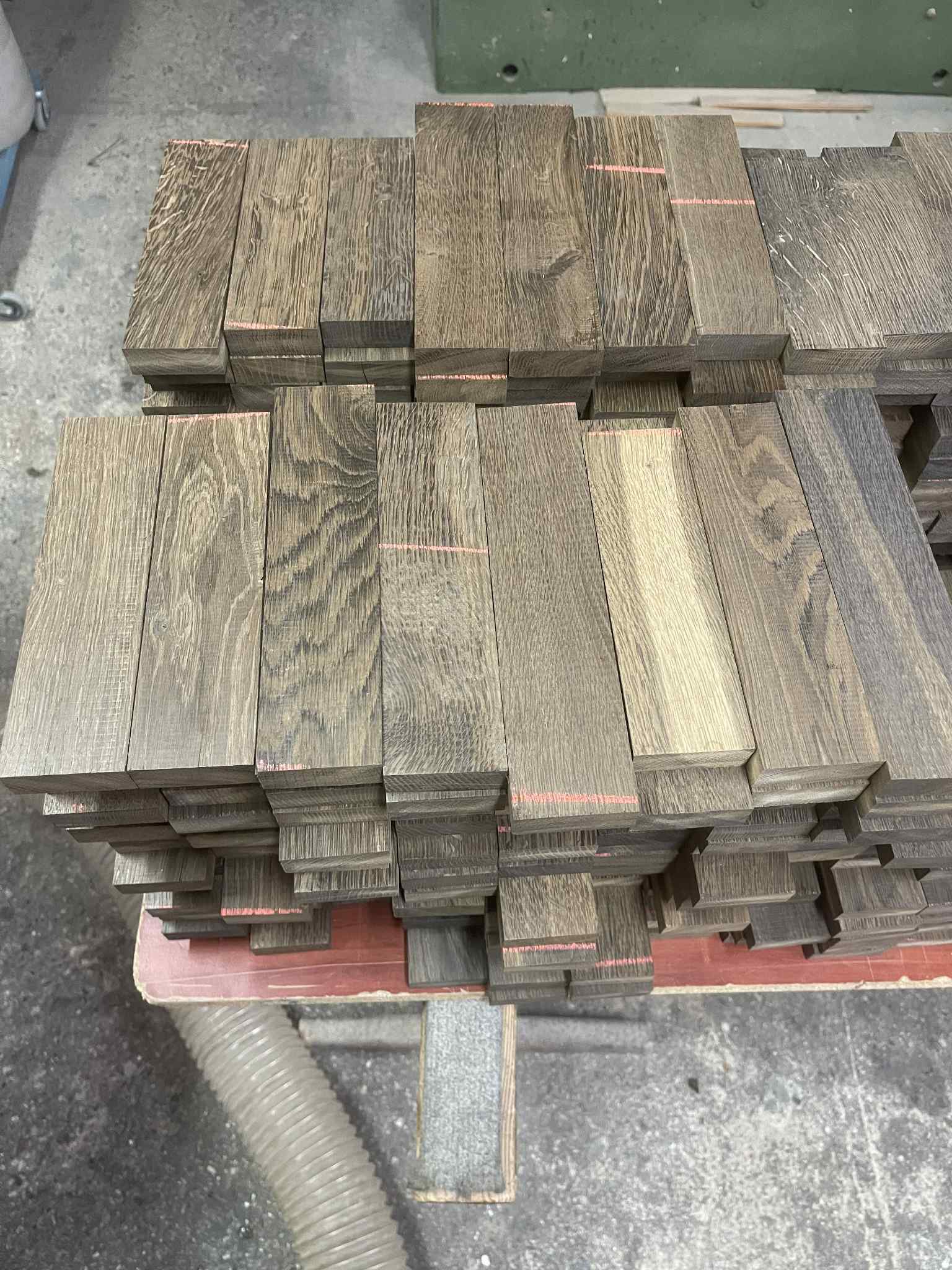 Fryza dąb wędzony 50szt 180-230x55x20mm idealne np. na okładki do noży. Dwie strony strugane, dwie po pile. Wilgotność 10%. Klasa A. Wysyłka gratis