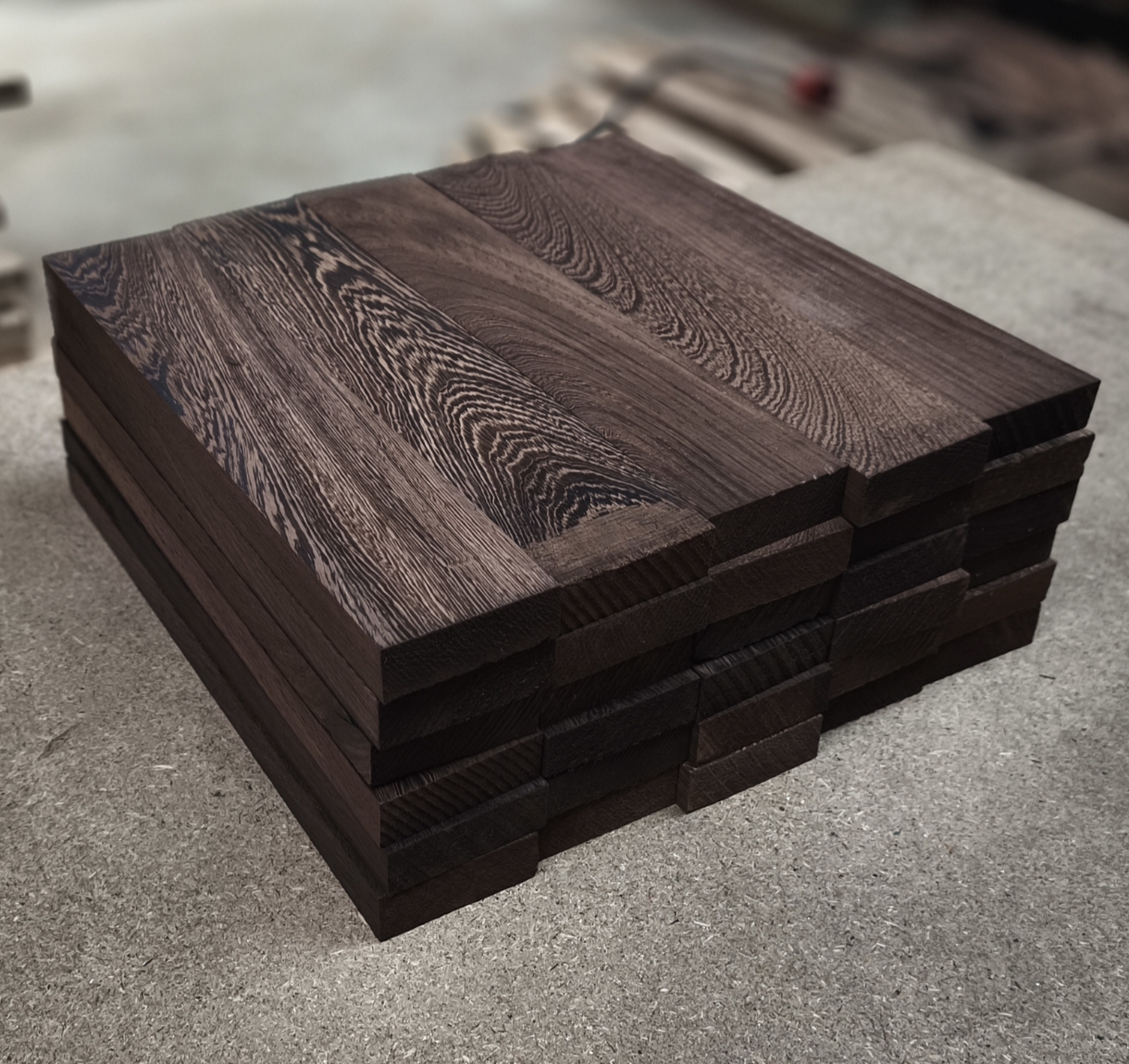 Paczka fryzy wenge 30 szt 350-380x72x20-22m. Czterostronnie strugane, klasa A, wilgotność poniżej 10%. Na zdjęciach przykładowa paczka.